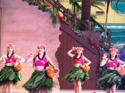 新宿から無料送迎バスで行きました。バスは満席、学生から年配の方まで幅広かったです。土曜日の昼間のショーは満席でしたので立ち見でした。夜のショーはS席を予約しダンサーさんと写真も撮りました。プールサイドの食事は期待できません。おにぎりやラーメンがあれば嬉しかったのですが、ここはハワイ…洋食がほとんどでした。ホテルの夕食のビュッフェは小さなお子さんがいるグループと、そうでないグループで座席がわかれていました。よい配慮だと思います。