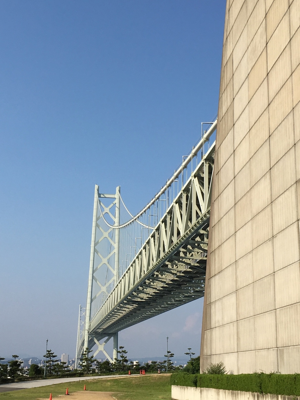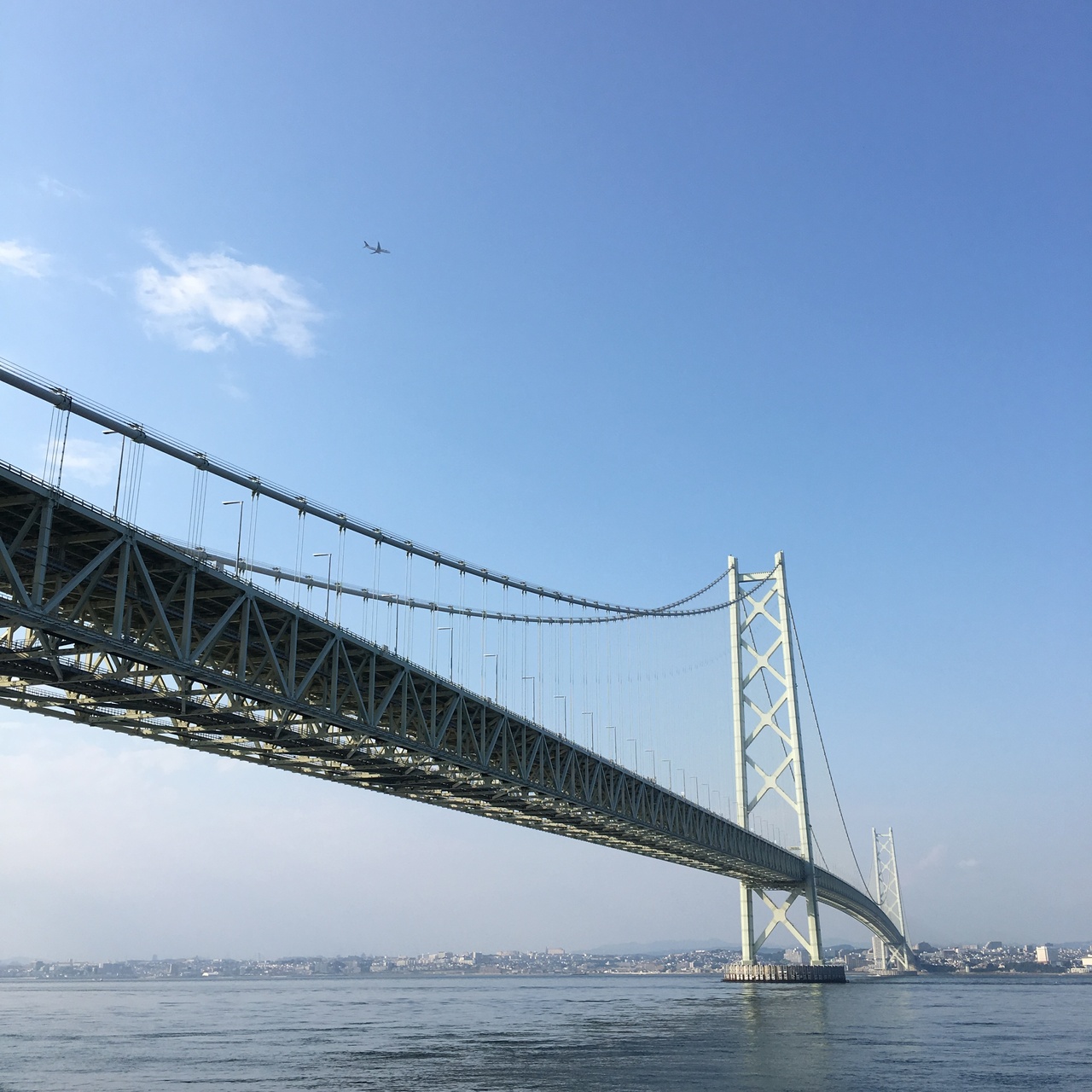 飛行機で関西に帰って来た時に上空から明石海峡大橋がよく見えるので(夜でもライトアップされているので良く見えます)、明石海峡大橋が見えると帰って来たなぁという気持ちになります。