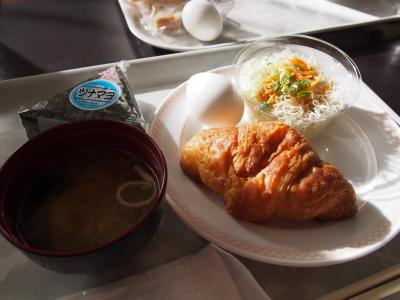 朝食はサラダ、パン、おにぎりなどが日替わりで用意されていて軽めに食べることが出来るので丁度良かったです。