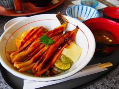 淡路牛赤トロ丼とふんわりあなごめし、生シラスのミニをいただきました。