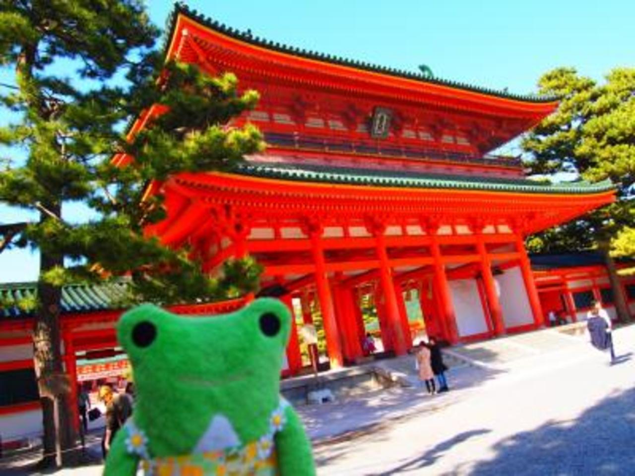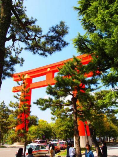 朱色の巨大な鳥居をくぐり、更に朱色が眩しく美しい應天門に迎えられます。