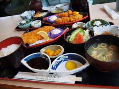 茶美豚(ちゃーみとん)が売りの様で、茶美豚のロースカツの定食とヘレカツの定食をいただきました。