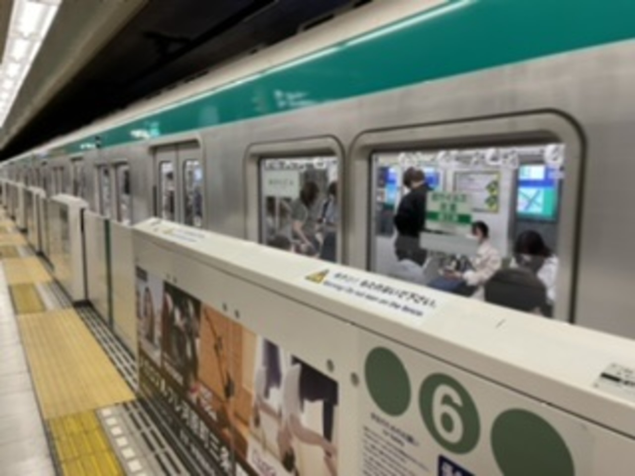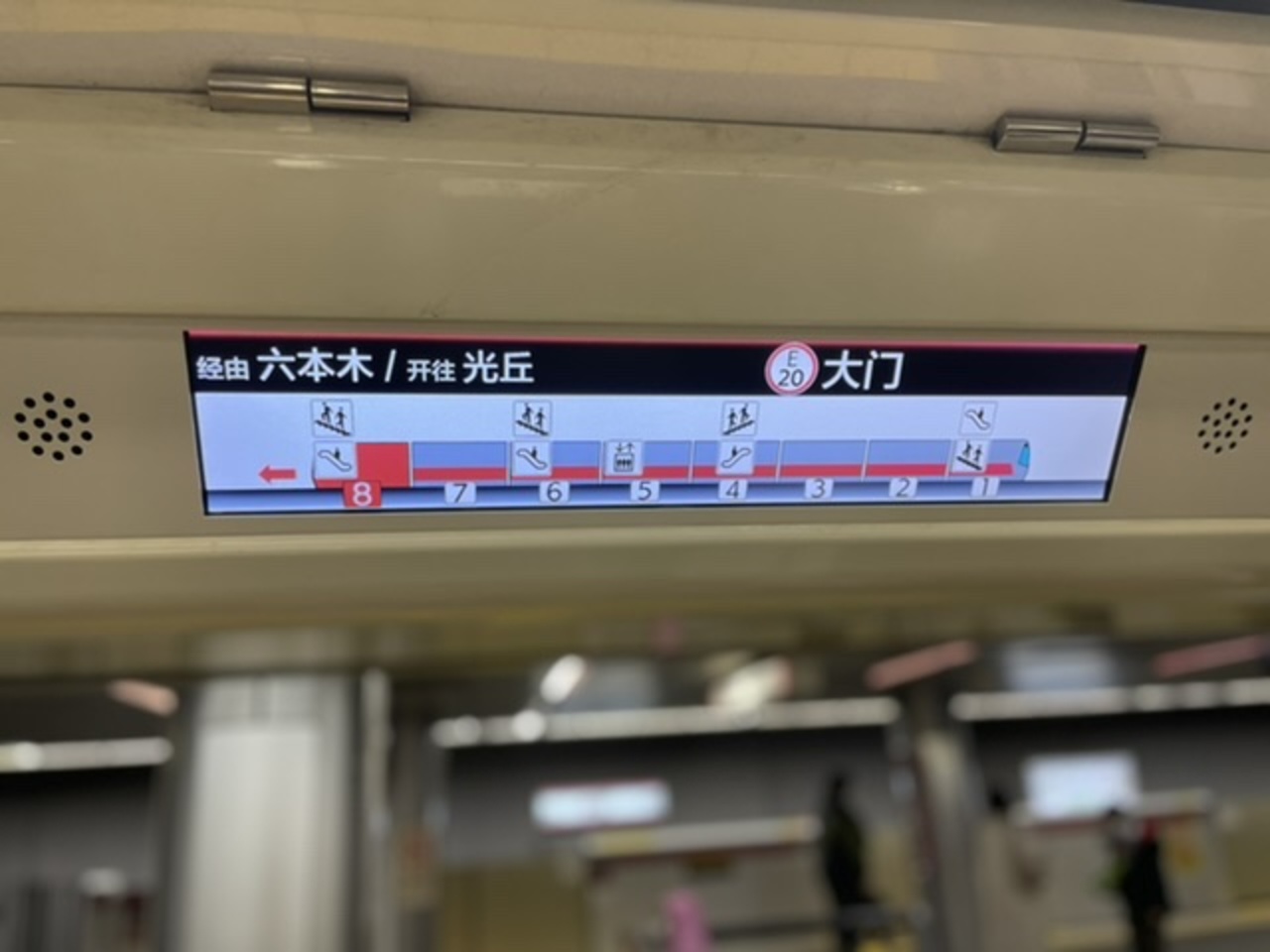大江戸線のホームはどこも深くて降りるのが大変です。車内は狭いですが、今は少し空いてますし便利なので乗ります。- 旅行時期