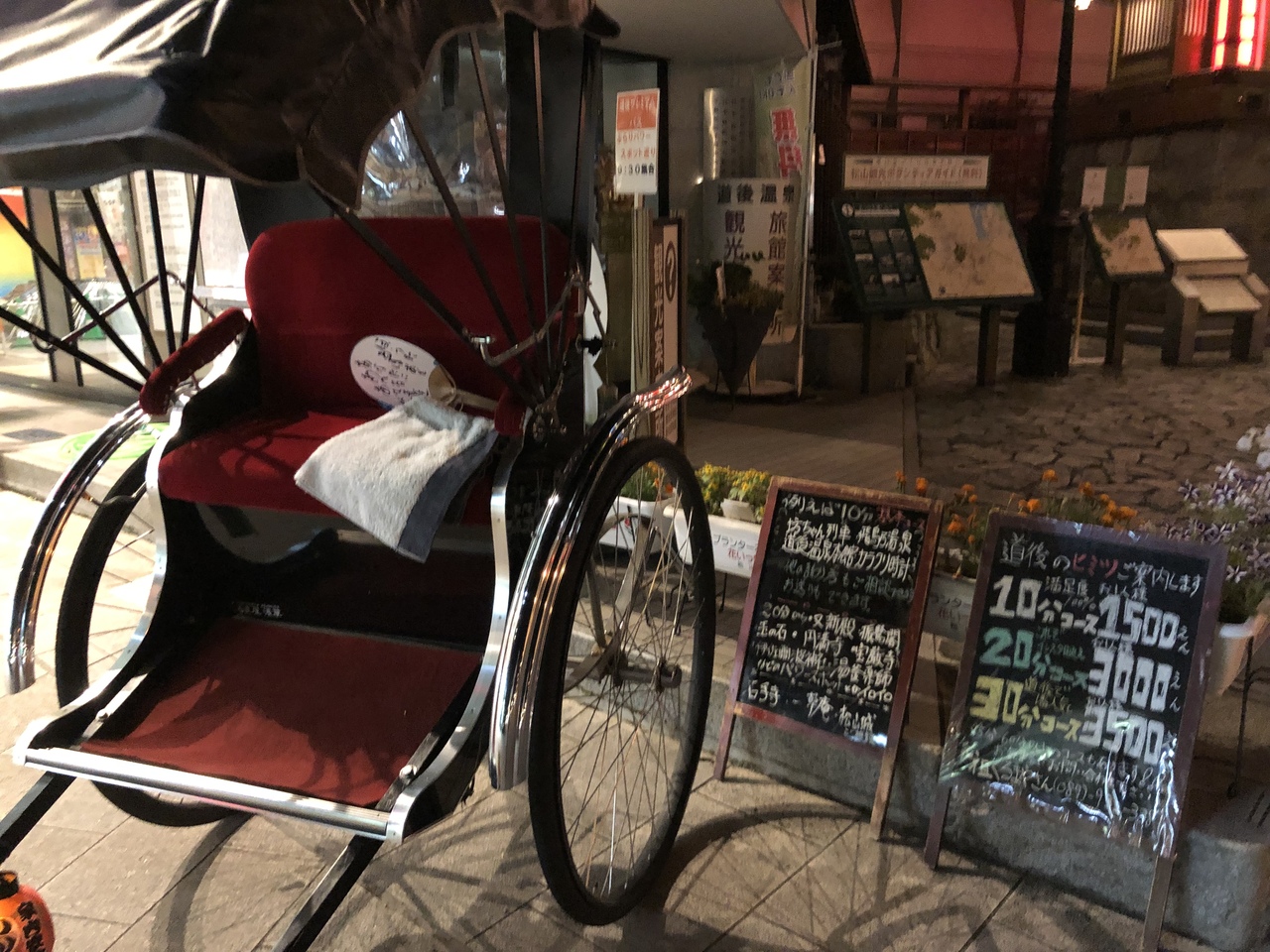 駅を降りて温泉へ向かう途中人力車が目立ちます。