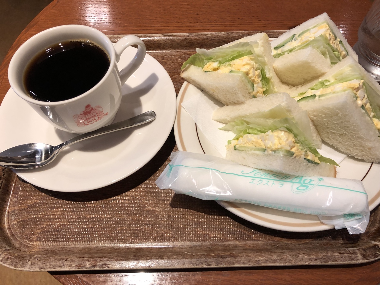 いつもコーヒーのみか、朝食の安いトーストセットだけでしたが、ランチタイムに来たらサンドイッチ食べてる人が多く、頼んでみました。