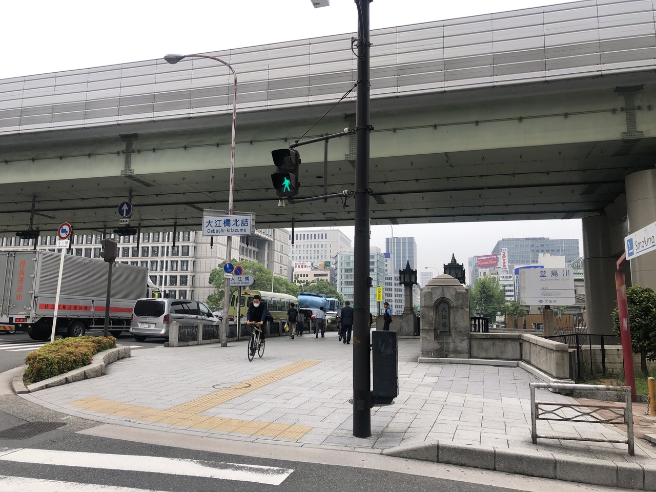 京阪電車の大江橋駅からすぐのところにあり、ここを渡るとANAクランプラザホテルがあり、その先が北新地です。