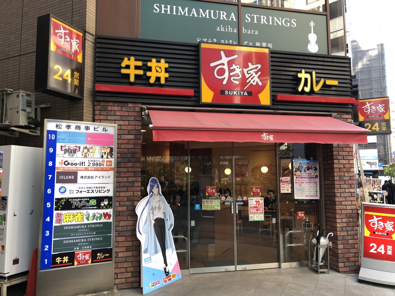 JR秋葉原駅の電気街口から徒歩5分くらいにある有名な牛丼のチェーン店です。