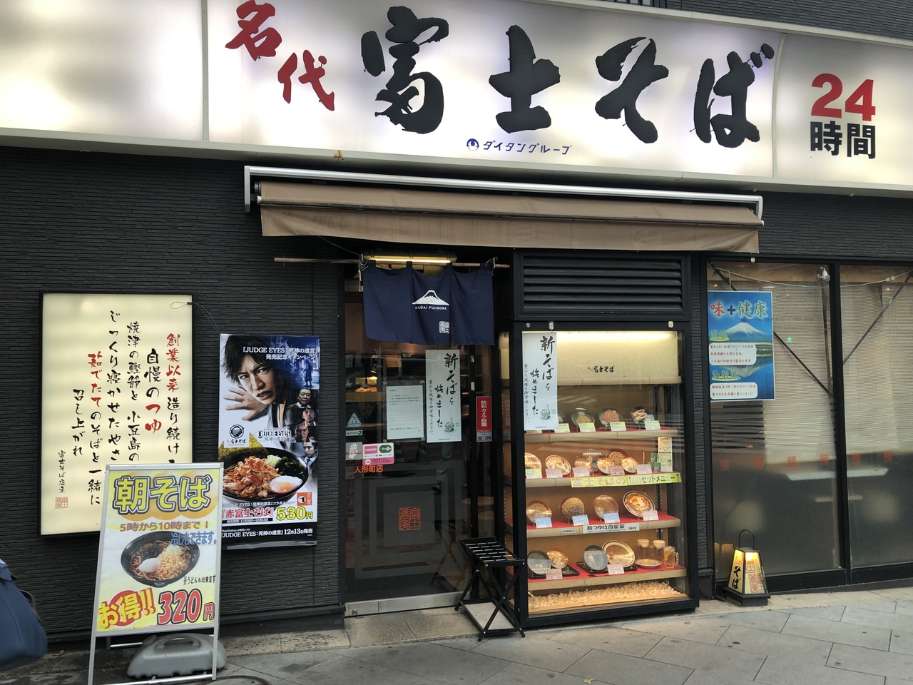 地下鉄浅草線の人形町駅から出てすぐのところにある立ち食いそばのチェーン店です。