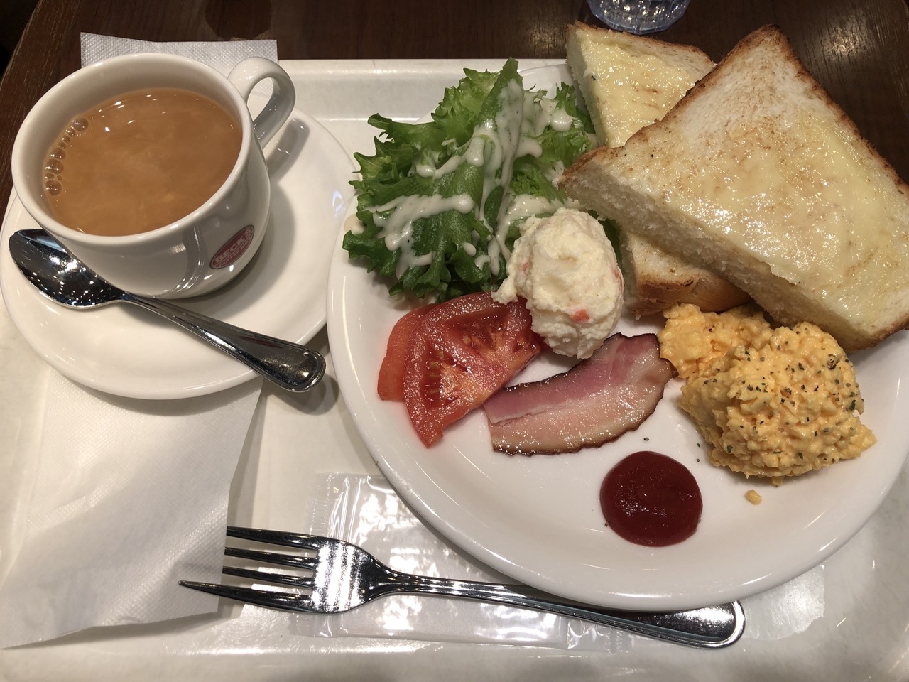 朝のブレックファーストメニューは便利でお得です。駅構内なのに読書をしたり、新聞を読んだりくつろいでいる人もいました。- 旅行時期