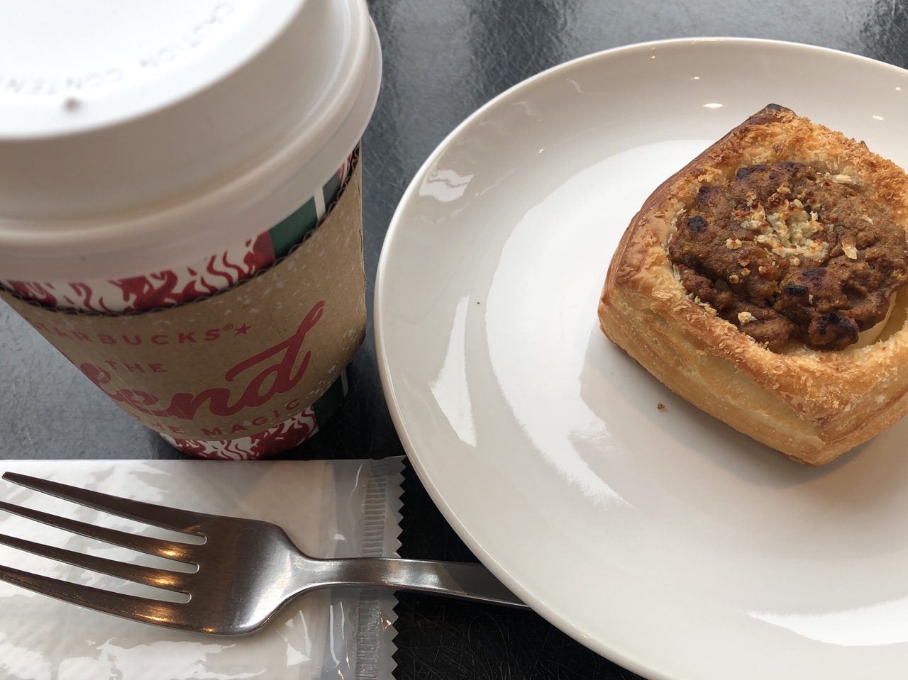 お昼にきたので、今回は新しくでた「エッグ&キーマカレーデニッシュ」を注文。