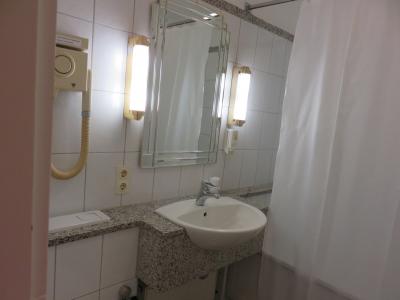 このクラスのドイツのホテルでは多いでしょうが、バスアメニティ(いわゆるお持ち帰りアメニティ)がありません。備え付けのバスジェル兼ハンドソープ兼シャンプーがあるだけです。女性ならそもそも備え付けのヘアケアは使わない方が多いでしょうから荷物が増えないことを喜びましょう。(どうしてすぐに使わないのにあのシャンプーたちは持って帰りたくなるのでしょうか)