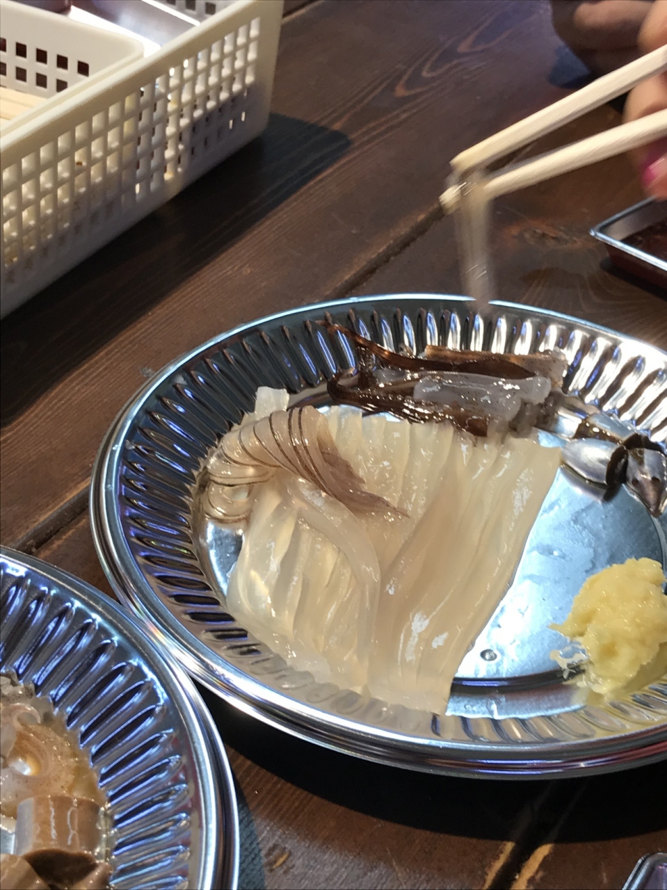 部位によってはまだ動いていて口の中でピクピク動いているイカ刺しを楽しみました。