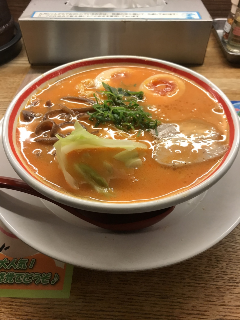からぼんは名前の通り辛いラーメンで、食べると顔が真っ赤になり、汗が顔から出てくる辛さです。