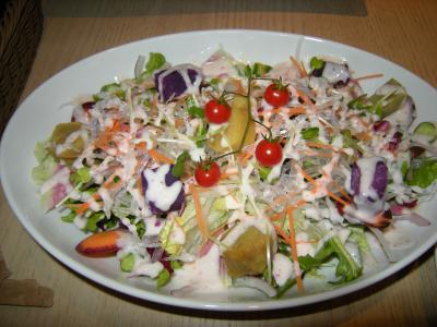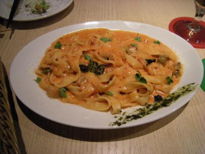 私が食べた物の中で、印象に残っているのは地元で採れたという野菜を使ったサラダ、エビとレンコンのトマトクリームパスタ、お茶のガトーショコラです。