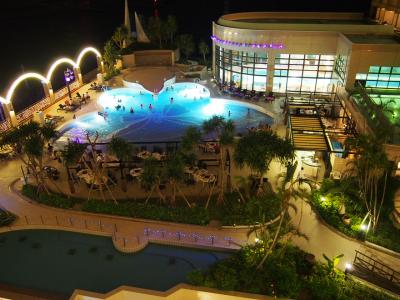 ホテルに戻り、外を見るとこんな感じでした。プールがライトアップされてて...
