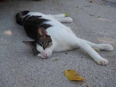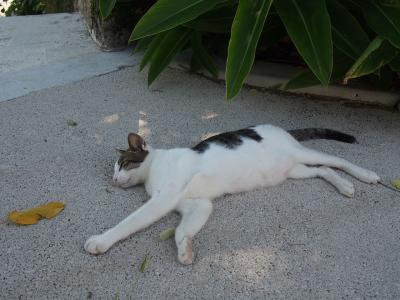 首里城を一通り見学し終えたところに、ねこちゃんがっ。日陰で伸びてます。