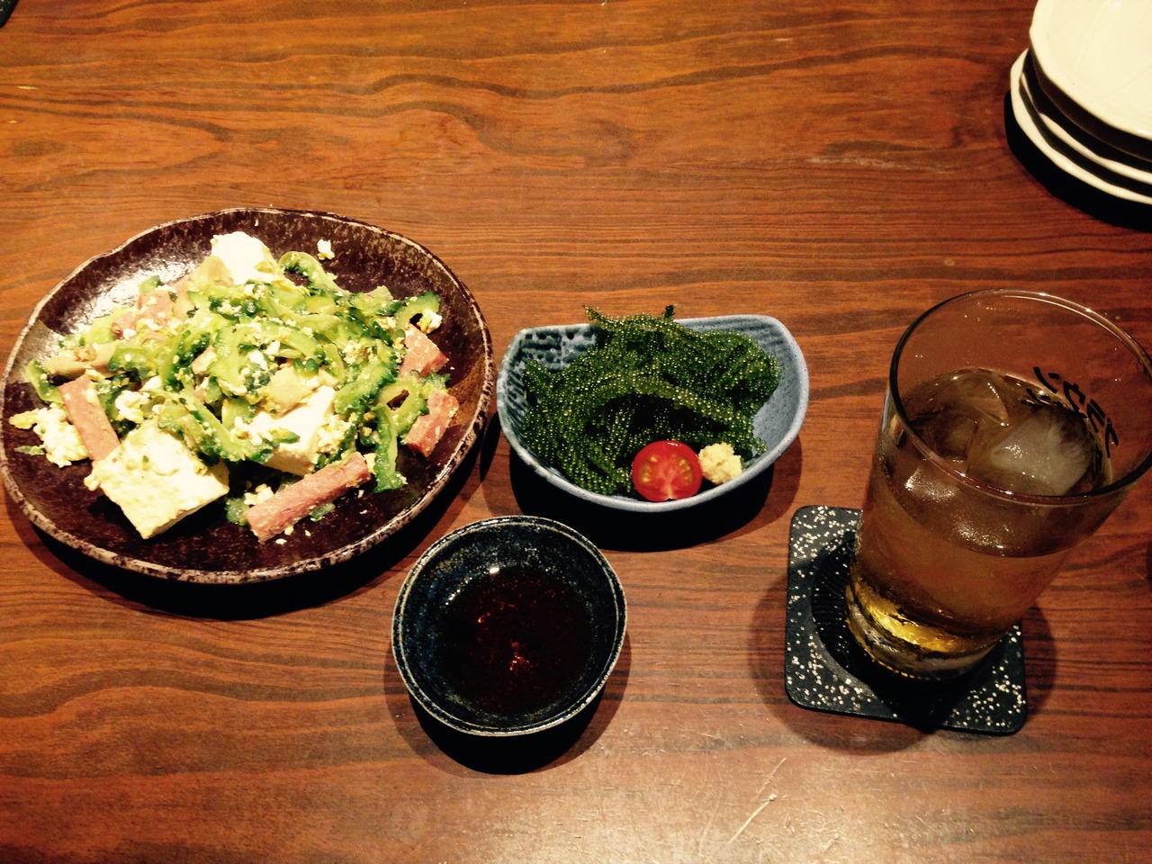 落ち着いた雰囲気の店内で、おいしい沖縄料理をいただきました。