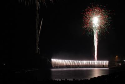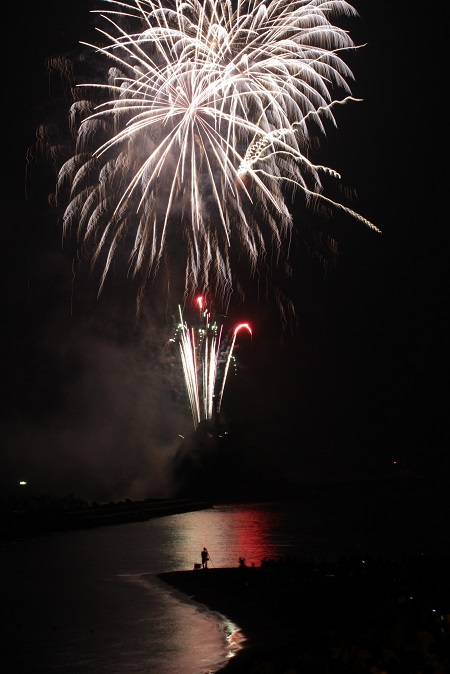 お盆の頃に開催される花火大会。海辺を上手く使った花火大会で浜辺からゆっくり見れて夏の夜の涼しい海風を感じながら眺められる。橋や浜辺から少し離れたところにある小島を利用して打ち上げられるため浜辺から綺麗に見える。また最後の出し物の橋を使ったナイアガラは迫力もあり綺麗である。花火の時間自体は短い。間隔がかなりあるのはイマイチ