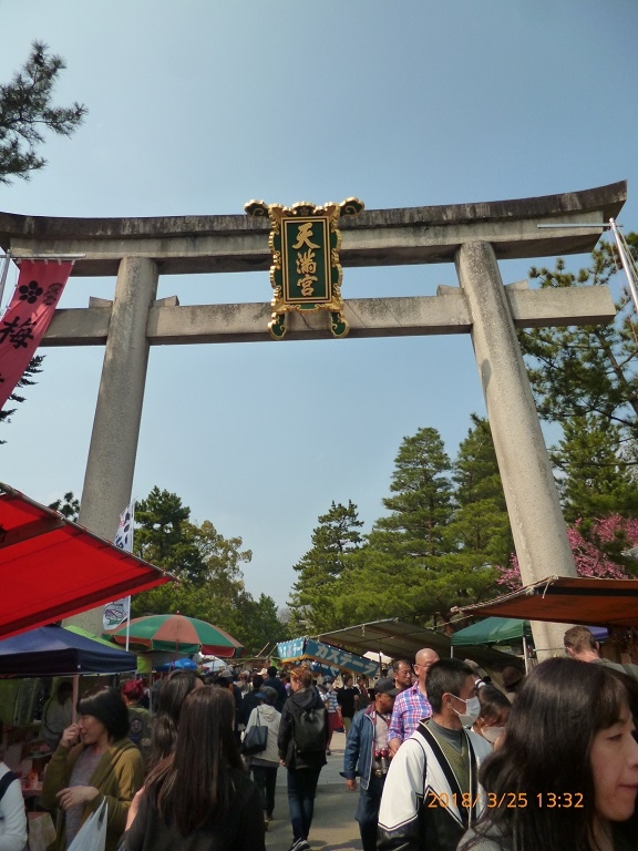 何度か参拝したのに、今日が骨董市がたつ日と気がつきませんでした。日頃から修学旅行生や受験生などを中心に大勢の参拝客がいますが「市の日」はもう一段アップ。参拝客が溢れかえっていました。今までと違った北野天満宮を満喫できました。