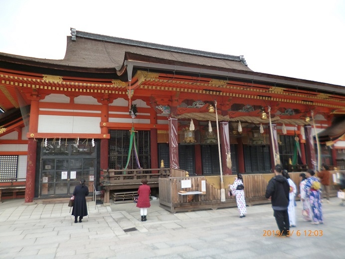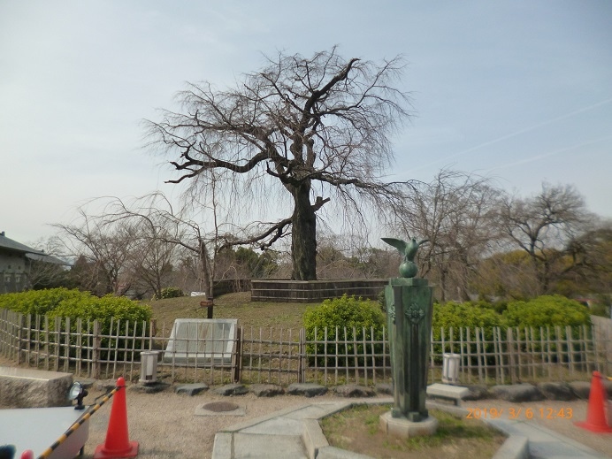 円山公園の園内中央にある有名な桜の木。「祇園の夜桜」と言って50年前に夜のライトアップされた景色を見て大感動した記憶が蘇りました。初代の桜の木は天然記念物に指定された樹齢400年の老木だったそうです。終戦ごろに枯れてしまったらしく私が見たのは二代目らしい。