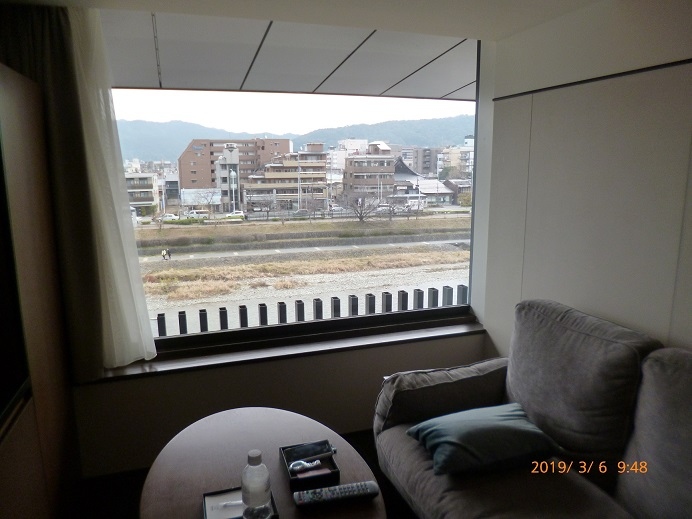 福岡・銀座に続いて京都にできたと知って利用しました。今まで利用してきたのできっと京都も素敵なホテルライフが楽しめると大いに期待していました。少しお値段はアップしますが「鴨川ビュー」の部屋を予約。期待を裏切ることなく部屋からの眺めは大満足でした。
