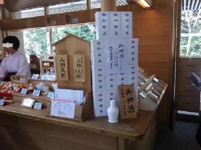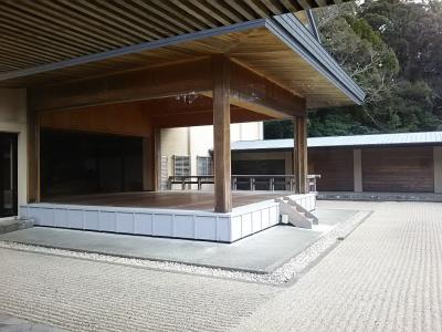 中央に能舞台があり各種行事が奉納されているようですが、基本的には参拝者向けの無料休憩所でした。無料のお茶もあり、きれいなトイレ、お土産の授与品の取扱いも行なっていました。お神酒を買えばよかったと後で後悔。写真パネルがあり伊勢神宮で執り行われる行事の様子を見ることができます。上映されていたビデオは伊勢神宮の歴史や主要行事が細かく紹介されていたので参拝前に見れば良かった。