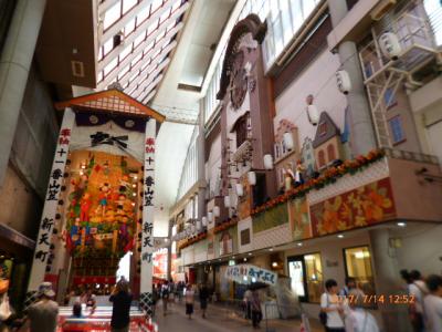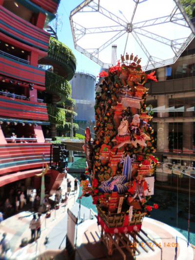 山笠はクライマックスの「追い山」だけでなく、祭りの期間中に各所で見られる「飾り山」のほうが一般の観光客やファミリーには楽しめると思います。勇壮な武者飾りの裏には毎年の人気キャラクターが飾られて裏表とも楽しく見れます。