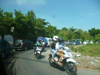 一日時間が空いたのでタクシーを時間チャーターして利用してみることにしました。街中にはあちこちに空車が待機していますが果たしてどのタクシーを利用するのが安心か分からない。観光客と見ると声をかけてくるのがうっとおしい。ネットで見た「ブルーバード」グループのタクシーが安心度が高いとあったのでその会社のドライバーと交渉。4時間40万ルピアでチャーター料金成立。誠実な青年でよかった。但し、行き先を間違えましたが・・・。バリ島の雰囲気を知りたかったので特に問題はなし。渋滞の道のりドライブを楽しみました。