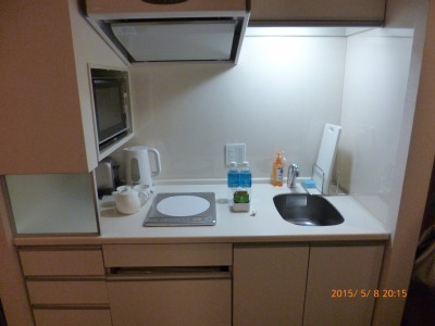 - キッチン付き。連泊して軽く自炊するには便利なつくり。