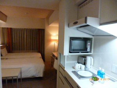 キッチン付きは京都では珍しいと思って気になり利用しました。結論から言いますとキッチンスペースが邪魔でした。その分は部屋がどうしても狭くなるので無くてもいいなと思いました。外国人(欧州系)の方が多く利用している印象でした。設備や清潔感は問題はありません。快適に過ごせます。