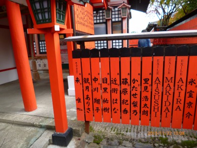 嵯峨野・嵐山の観光ルートのなかにありました。ガイドブックにには載っていましたがどんな神社かは知りませんでした。大きな神社ではないので道から中を覗いてみると若い情勢を中心にいっぱいでした。どうやら恋・縁にまつわる神社のようです。異様な熱気に私には関係ないと、悪いと思いましたが参拝もせずに通り過ぎました。