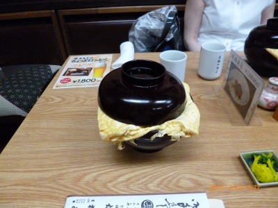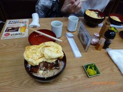 ガッチリ食べたいという思いと、京都観光らしさの思い出も欲しいという感じで選んだのがお店の名物「きんし丼」です。ウナギと出汁巻き卵のコラボした商品です。丼からはみ出した出汁巻き卵が美味しかった。ウナギのほうはよく味を覚えていません。そのくらい出汁巻き卵の大きさと美味しさが印象深い一品でした。