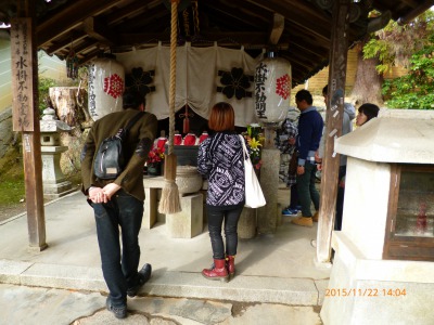 仁和寺は特色のある桜で有名ですがいつもそのシーズンを逃してしまいます。でも今回は時間もゆっくりあったので境内の奥まで歩いてみました。偶然に見つけた「水掛不動」にお会いすることができました。また、菅原道真公ともゆかりがあるとのことで天満宮フアンとしては嬉しい出会いでした。