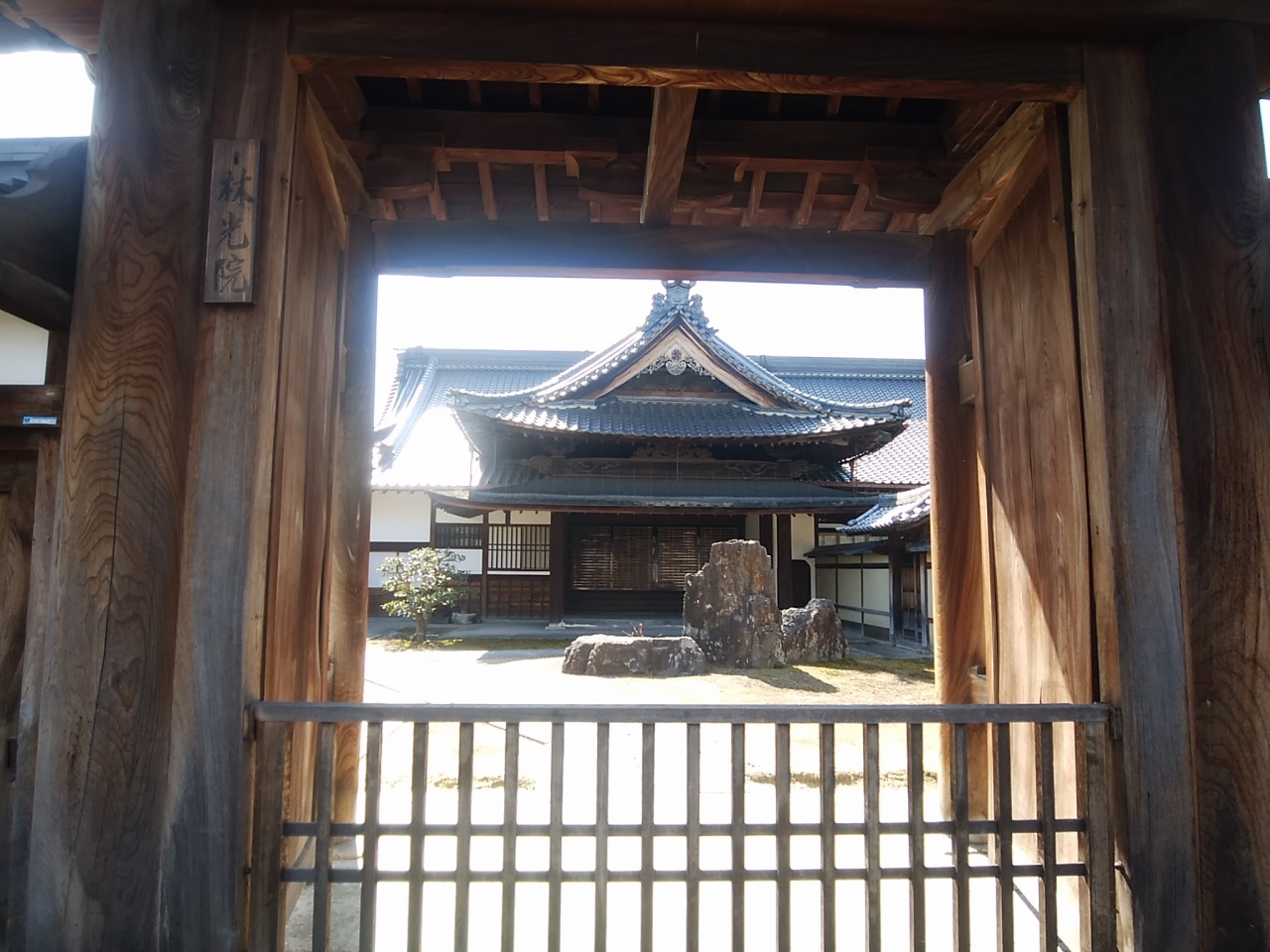 何度か京都に訪れていましたが相国寺は知りませんでした。また境内は広大でいくつもの寺院が散在しておりました。その参道はきれいに手入れされており普段は参拝できない寺院も多かった。この林光院も当日は見学できず残念でした。山門から少しのぞかせて頂くと大きな石が曰くありげに寺院の玄関前に鎮座していました。興味津々です。
