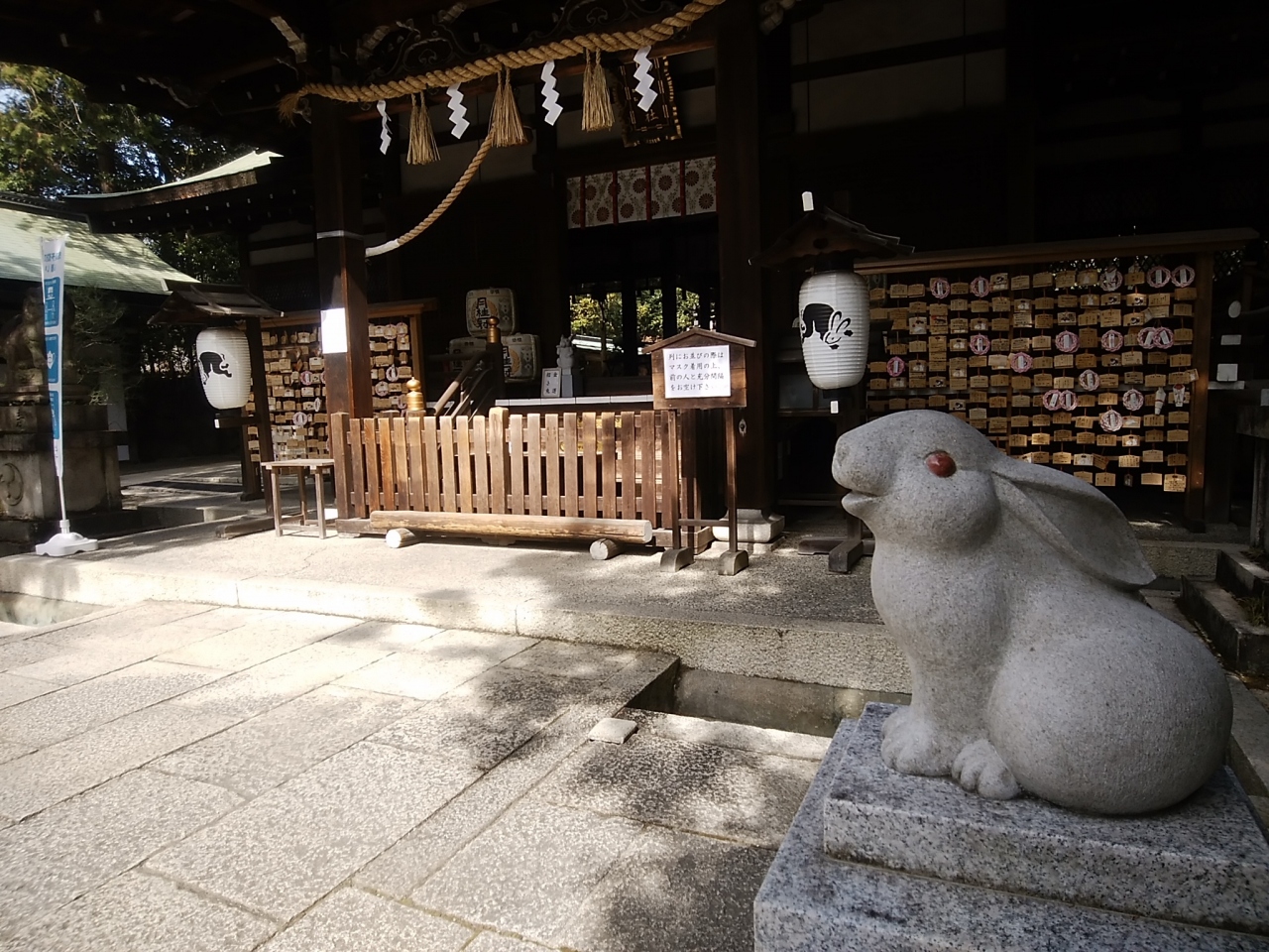 平安神宮へ向かう途中で「岡崎公園」と勘違いしてバスを降りてしまいました。その時に偶然に目にしたのが「岡崎神社」でした。通りから見ると大きな神社のようだったので参拝することにしました。思ったより立派な社殿とウサギのつながりが面白かった。