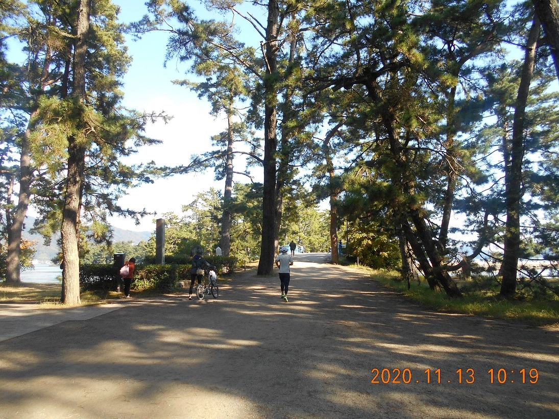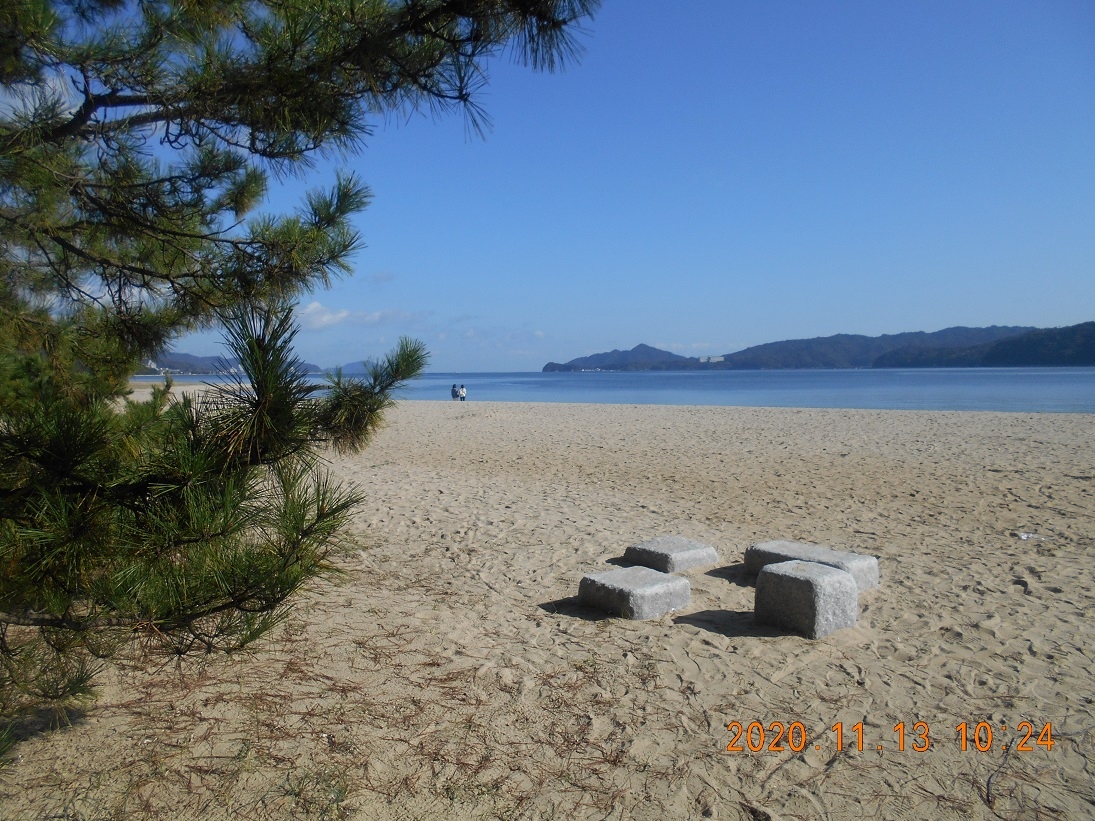 訪れたのは11月の天気の良い日ですので当然のことながら海水浴はしていません。天橋立の松林を散策していると両側にときおり浜辺が透けて見えます。どんな海浜だろうかと気になったので浜辺に近づきました。絶景の景色の中で夏の海水浴を楽しめたら最高だなと思いました。