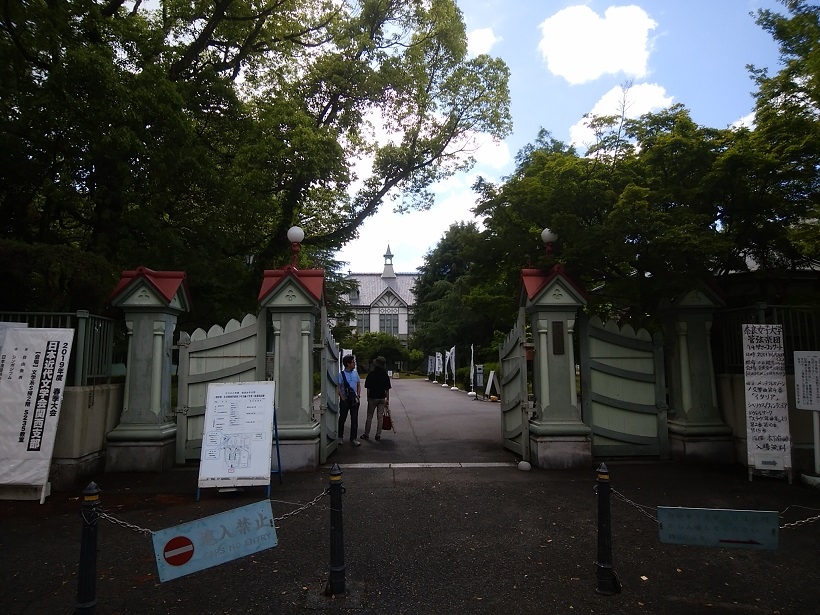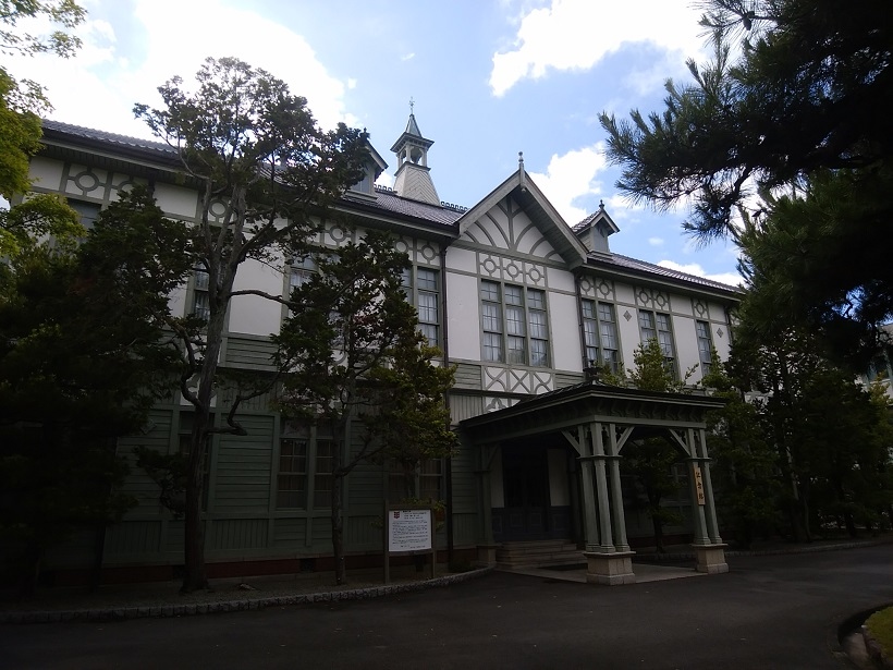 まだメジャーな観光エリアではありませんが、近年は「きたまちハイキングコース」として少しずつ知名度と人気が上昇しているようです。校門前から見える旧本館は重要文化財に指定されていると案内板に書かれていました。創立110周年ということで至る所にのぼりが立てかけられていました。校門入口の守衛さんに許可を得ると校舎のそばまで入っていけて撮影もできました。旧本館の大学記念館は、色合いも美しく保存されていて素晴らしい建築物です。