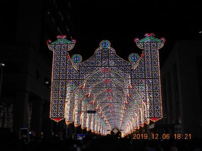 デザイン光で埋め尽くされた感じがします。すごい人で大混雑ですがトラブルも無く人ごみが流れていきます。ゴール地点の公園には最後のお土産イルミネーションが輝いていますので是非ご自分の目で楽しんでください。警察官・警備員が総出の対応でした。- 旅行時期