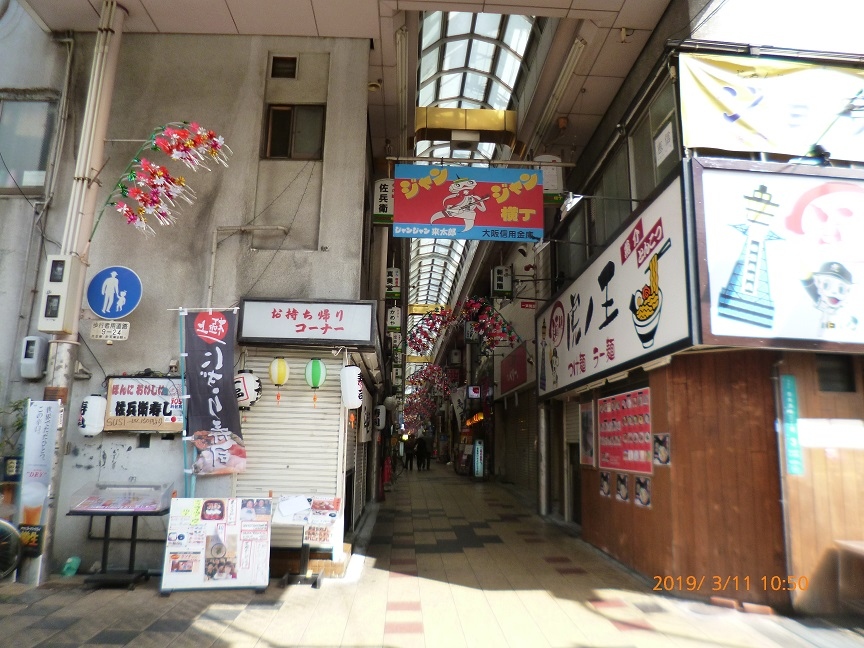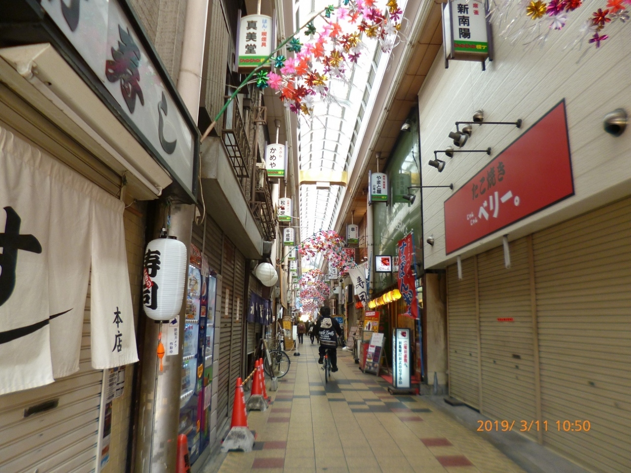 喫茶店や立飲み、串かつ、そして囲碁クラブや射的場もあったりする大阪のディープスポットという印象でした。午前中なのか今はそうなのか治安は悪くはなさそうでした。でも漂う雰囲気が禁断のスペースに踏み込んだようなドキドキはありました。