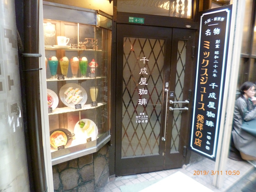 大阪のソウルドリンクといえばミックスジュースらしい。その発祥のお店ということでガイドブックには必ずと言っていいほど掲載されています。店頭の「ミックスジュース発祥のお店」の看板が目印のレトロな喫茶店です。ナポリタンや厚焼き玉子サンドもおススメメニューのようです。コーヒーや食事も美味しいです。