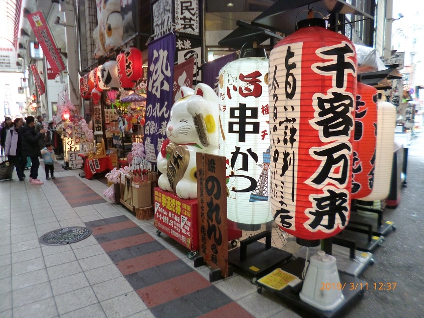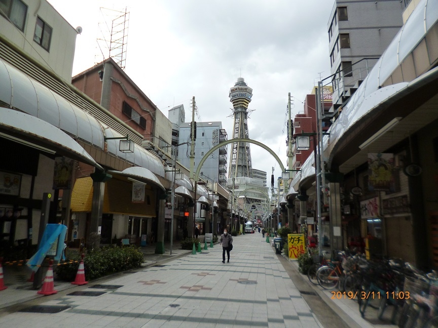 - メインストリートのようで観光客は多くはない。通天閣から見ると裏側の印象があるせいだと思います。