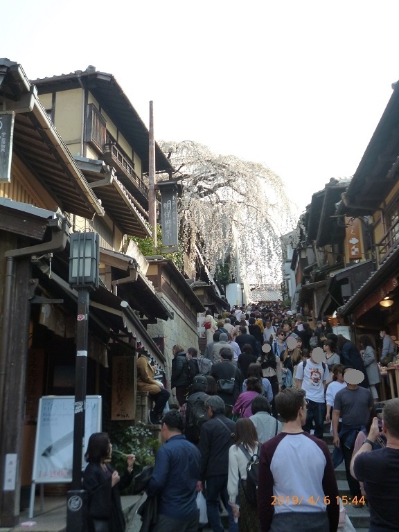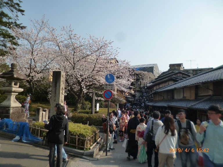 祇園から清水寺に続く参道のひとつとして造られた坂らしいが未だに「三年坂」と「二年坂」の明確な区切りが分からない。分からなくても余り気にしないで昇り続けている大勢の観光客の一人です。京都の家並みが折り重なる石畳の坂は美しい風景です。二年坂から正法寺への石段を上り詰めると東山山麓と京の全景パノラマを見ることができるらしいので次回はチャレンジしよう。