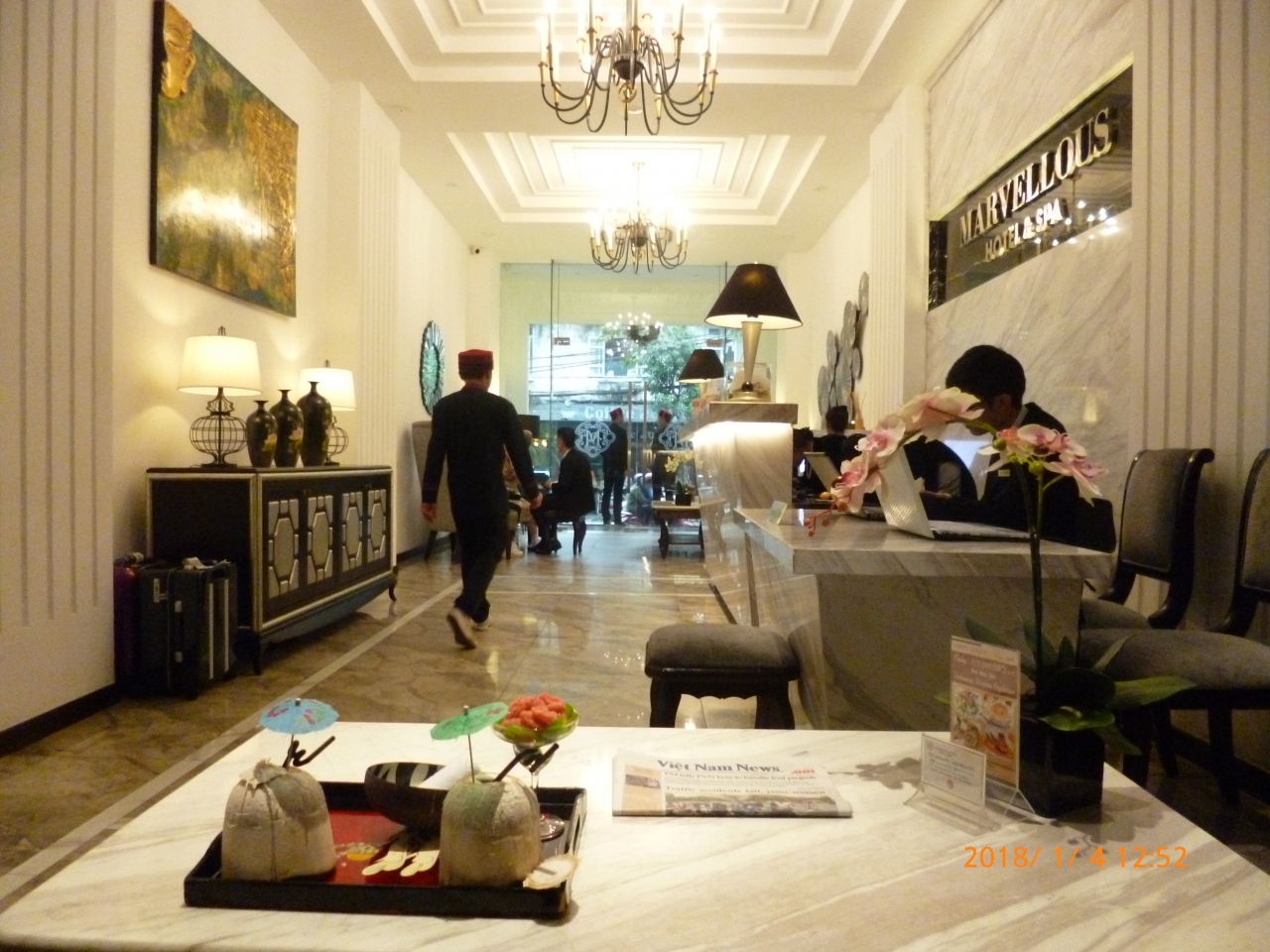 チェックイン時の手際の良さが第一印象です。ドアボーイからフロントスタッフまで全員がテキパキと動いて気持ちがいい。館内も清潔で綺麗です。1階のスパが家内いわく最高だそうです。日本で2500円・60分のボディケアなんて有り得ないそうです。丁寧にケアして頂いて翌日も予約していました。おススメのホテルです。次にハノイに行くときも第一候補になるでしょう。