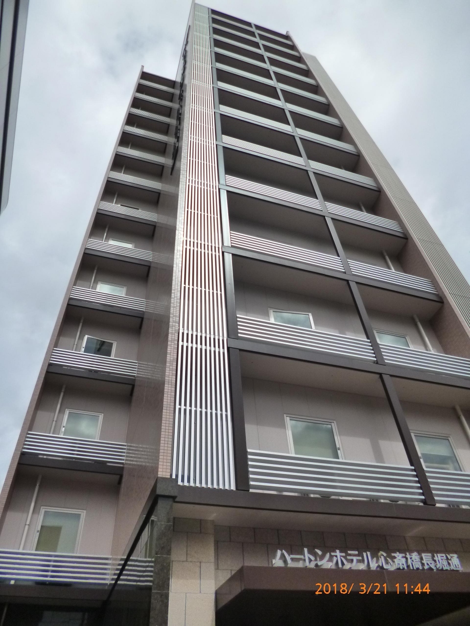 地下鉄・四ツ橋線の「四ツ橋駅」から徒歩1~2分という便利な立地。この四ツ橋駅は、名前が違うので分かりずらいですが、実は御堂筋線・長堀緑地線の心斎橋駅と直結しています。徒歩3~5分かかりますが3つの駅が利用できてとても便利な駅です。もちろん地下道ですので雨が降っても傘の必要はなし。大阪駅周辺のホテルで歩かされるより楽でした。