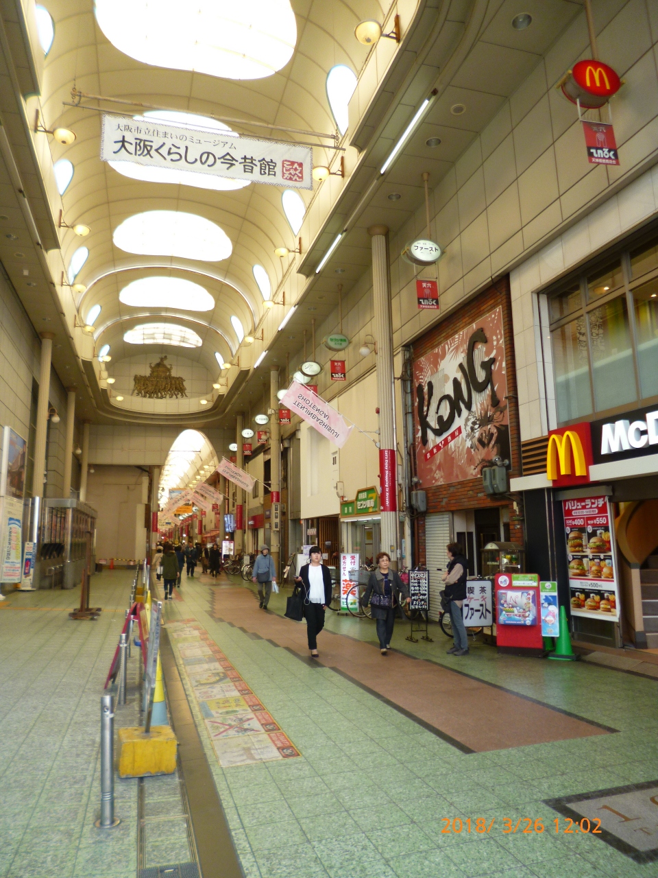 「大阪くらしの博物館」を見学した後に通りました。商店街と隣接していたので便利でした。とても長く続く商店街でどこが始まりで、どこが終わりなのかは分かりませんでした。商店街がこんなに長い距離続いているのは他に無いのではないでしょうか。しかも平日なのに地元の方がとても大勢で買物をされていました。