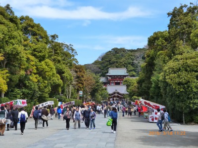 鎌倉観光の定番スポットなのではずせませんでした。駅からは遠いいのですが、天気にも恵まれて「小町通り」を楽しみながら行くので苦にはなりませんでした。立派な神社でテレビでも話題になっていたご神木を拝見して来ました。