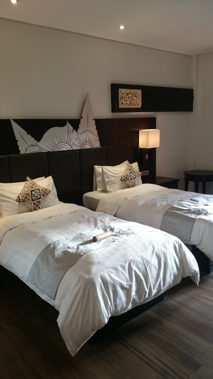 お部屋は清潔でバリらしいインテリア。記念日ということもあり、花びらでデコレーションして下さっていました♪