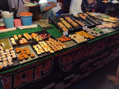 色々屋台が並ぶ。しかし、ドリアンやマンゴスチン、フルーツはなかった。