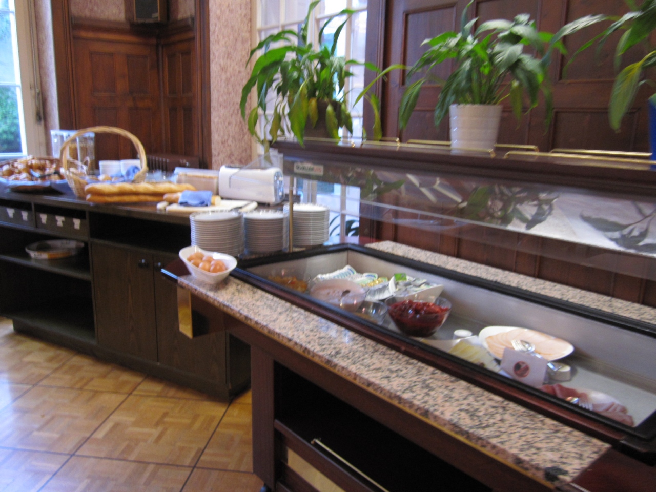 朝食室はペア席が多いので、3人以上の場合は、空席が2つずつしか空かず、一緒に食べるのなら7時くらいに行くか、少し待たなくてはなりません。食事はパン、シリアル、クッキー、ヨーグルト、ジャム、チーズなど簡素なもので、飲み物はコーヒー、紅茶、ホットチョコレートなどオーダーで入れてくれました。- 旅行時期