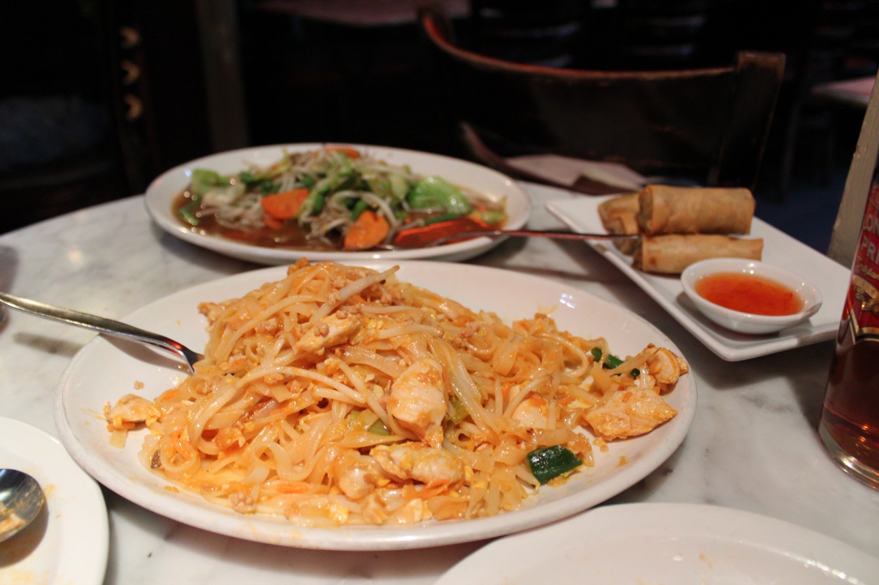 タイ焼きそばと野菜炒め、揚げ春巻きをオーダー。
